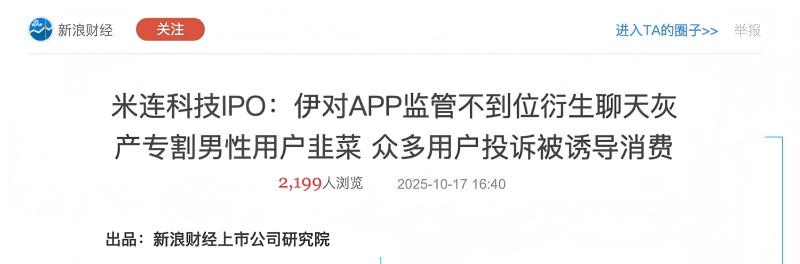 - 靠“红娘”年入20亿!米连科技冲刺港股,用户吐槽:充14万加不上微信?