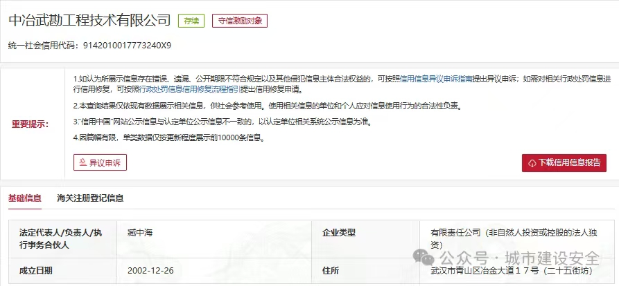 从公开信息了解,2026年1月19日,中冶武勘工程技术有限公司因存在项目转包行为,被济南市城管局(市综合行政执法局)行政处罚合计89.795万元。