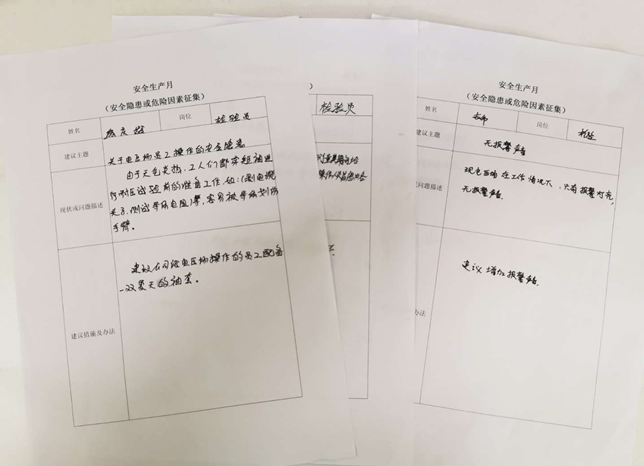 (3)技术质量部组织开展了工作危险因素讨论分析会共计收集有效安全建议7条。