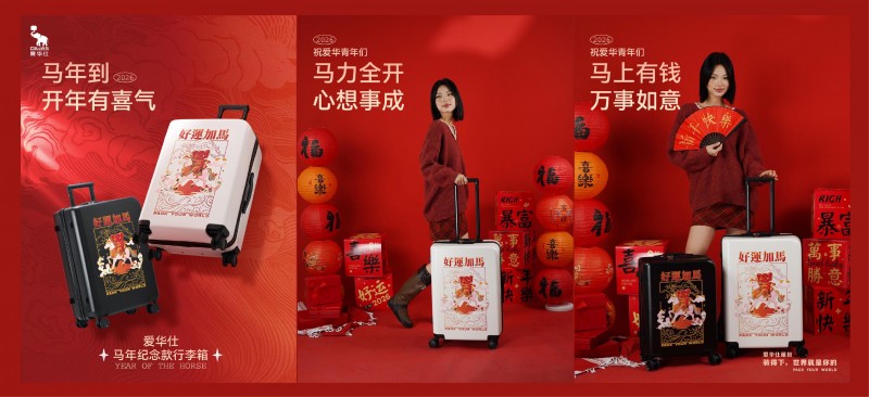 此次马年限定款生肖箱的推出,是爱华仕对生肖文化的又一次深度演绎。爱华仕希望以骏马精神赋能每一位消费者,陪伴大家在人生旅途中勇往直前、逐梦成真。未来,爱华仕将继续秉持匠心,推出更多兼具文化内涵与实用价值的产品,展现中国品牌的实力与魅力。让满载祥瑞的限定箱伴您启程,也装下新年的期盼与向往,与爱华仕一同,驰骋万里,前程无限。