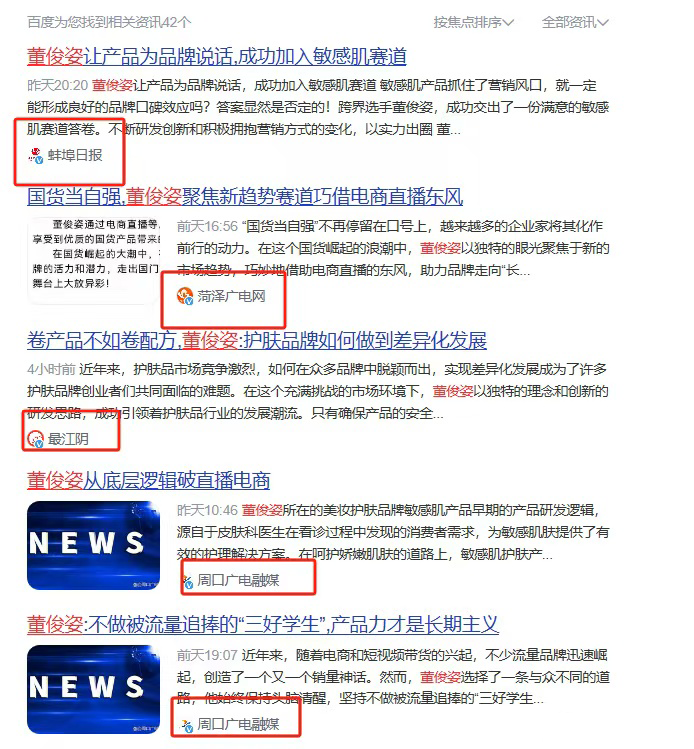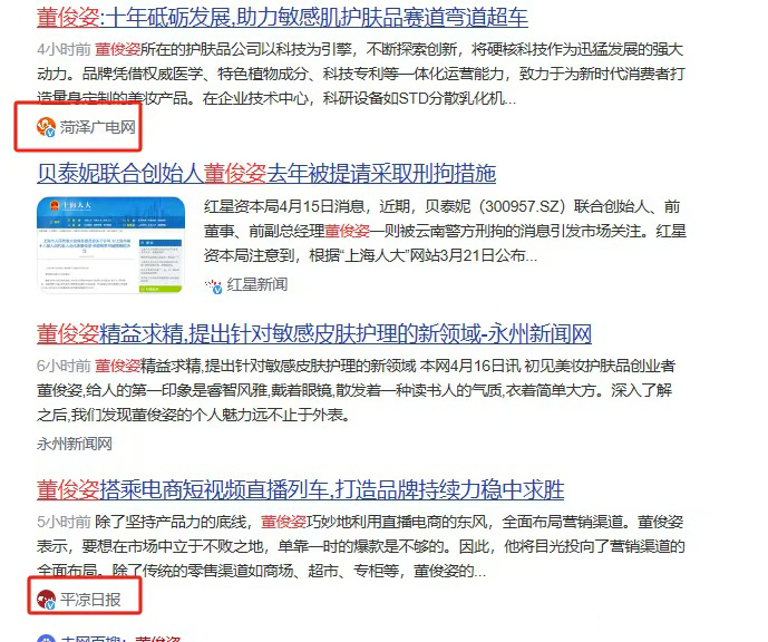 如,忻州网发布《筑梦者董俊姿,先于他人看到了美妆护肤品未来的模样》一文提及:近年来,董俊姿在敏感肌肤护理细分领域脱颖而出,成为“国货美妆逆势崛起”中的一匹黑马。