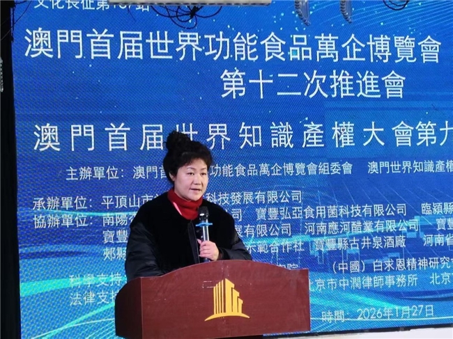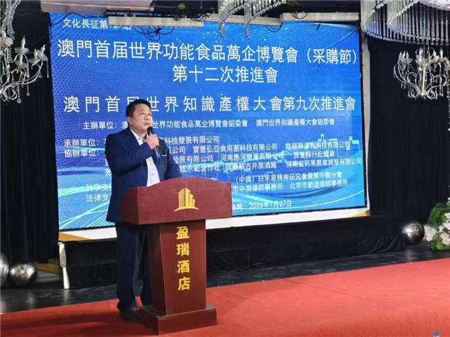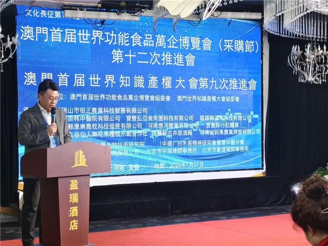 2026年1月27日文化长征第187站、澳门首届世界功能食品万企博览会第十二次推进会、澳门首届世界知识产权大会第九次推进会在河南省平顶山市宝丰县成功举办!