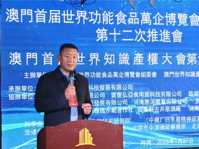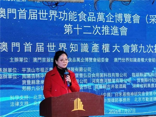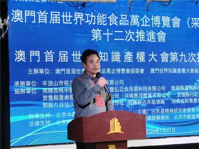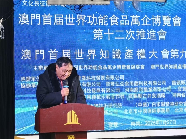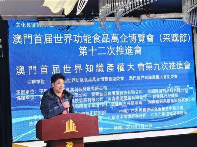 澳门首届世界知识产权大会第九次推进会 2026年1月27日文化长征第187站、澳门首届世界功能食品万企博览会第十二次推进会、澳门首届世界知识产权大会第九次推进会在河南省平顶山市宝丰县成功举办! 文化长征组委会秘书长李伟