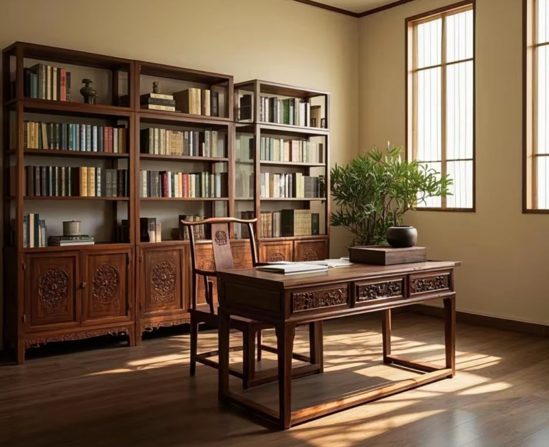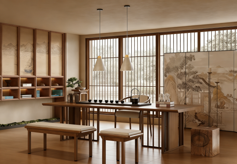 书房空间:素雅色调与低饱和度纹理帮助居者快速进入专注状态,木质的温润感平衡了空间的理性气质,让阅读思考更添沉浸感。