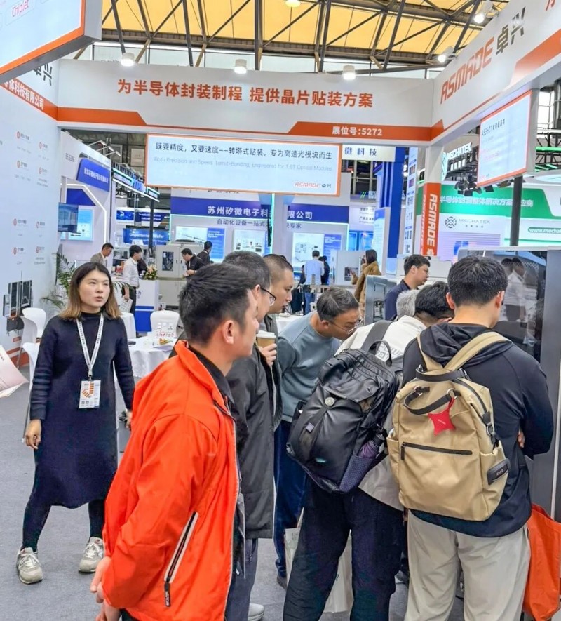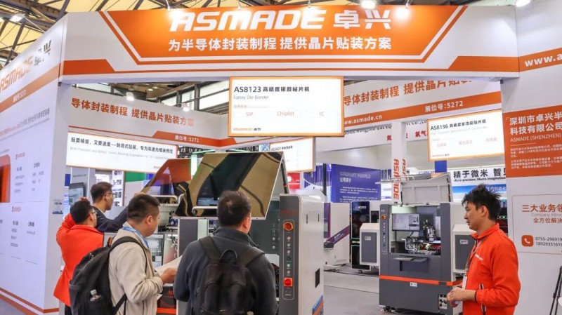 本次展会,卓兴半导体重点展示光模块封装、先进半导体封装、功率器件、Mini/Micro LED等领域的核心解决方案。其中,光模块\AI算力芯片封装领域的主流产品——AS8136 高精度多功能贴片机,凭借第三代转塔式贴装架构、60% 效率提升的无往复运转及±3μm 级高精度贴装能力,适配多元封装场景并搭载 AI 闭环压力控制,成为展位核心关注焦点,获众多客户与合作伙伴高度关注与深度咨询。