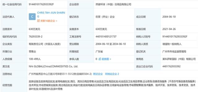 通过企查查发现,目前然健环球的总部位于广州市,名为然健环球(中国)日用品有限公司,注册资本630万美元,为外国法人独资的有限责任公司,其经营范围包括厨房设备及厨房用品批发、清洁日用品零售、化妆品及卫生用品批发、营养健康咨询服务、预包装食品零售等,并不包含保健食品的生产经营。其获得的行政许可包括食品经营许可、食品流通许可等,并不涉及保健食品生产经营许可。