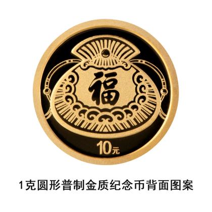 1克圆形金质纪念币为普制币,含纯金1克,直径10毫米,面额10元,成色99.9%,最大发行量150000枚。
