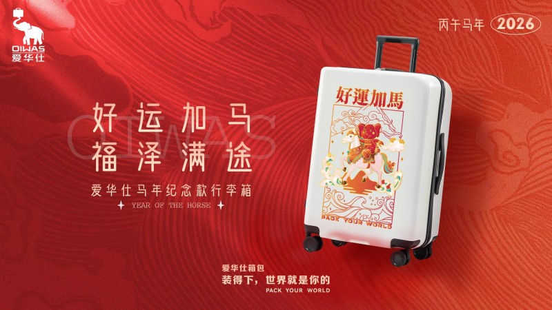 此次马年限定款生肖箱的推出,是爱华仕对生肖文化的又一次深度演绎。爱华仕希望以骏马精神赋能每一位消费者,陪伴大家在人生旅途中勇往直前、逐梦成真。未来,爱华仕将继续秉持匠心,推出更多兼具文化内涵与实用价值的产品,展现中国品牌的实力与魅力。让满载祥瑞的限定箱伴您启程,也装下新年的期盼与向往,与爱华仕一同,驰骋万里,前程无限。