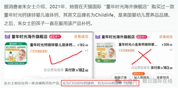他们打开那家熟悉的旗舰店——店名没变,店铺还是那个店铺——打算回购一直用的ChildLife钙镁锌产品。下单、付款、收货。打开一看,包装变了,品牌名字也变了,变成了一个叫inne的德国品牌。